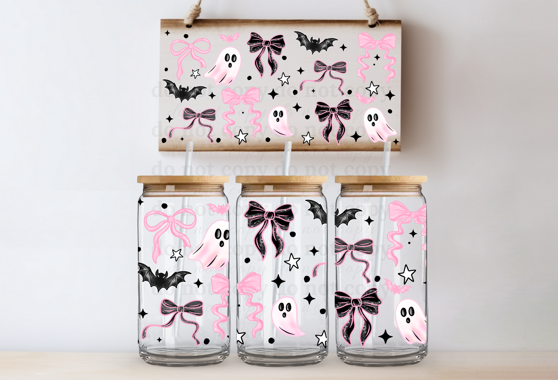 Pink Bows & Ghost - UV DTF Cup Wrap